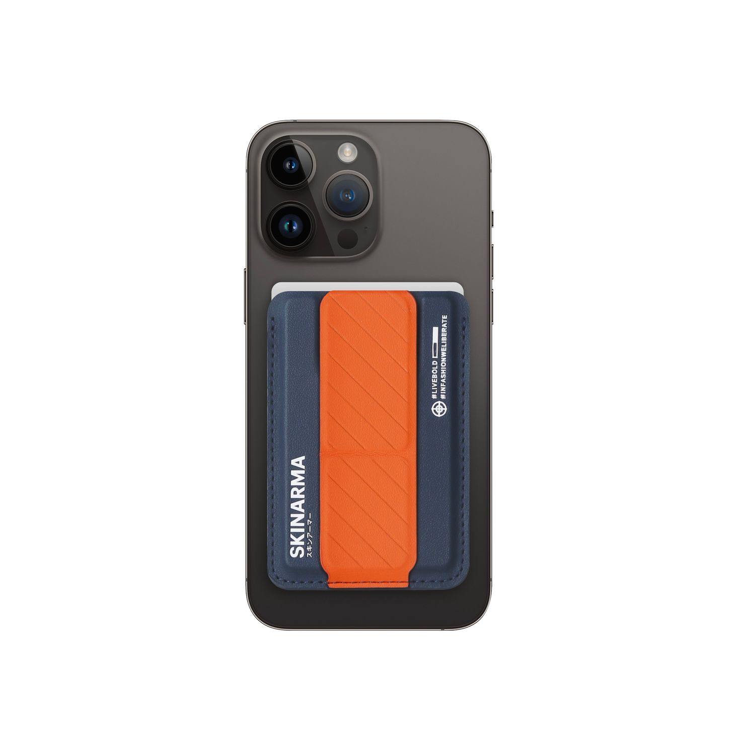 SKINARMA KADO 磁吸卡夾支架 *握把設計,輕鬆操控手機的四角 *智能使用模式,可輕鬆使用手機 *磁吸支架 摺疊設計 可享受免持觀看 以最佳角度多重觀看模式 *便利卡夾 隱藏切口輕鬆滑出卡片 輕鬆刷卡 (不支持刷卡感應) *附特選薄膜背膠,支持非 MagSafe 設備使用 The Kado Sanp-On employs magnets to attach securely to the latest iPhone. The precise fold design allows for intuitive and flexible use-simply snap it on, stand it up and fold it back into place , A powerful companion to your digital life.