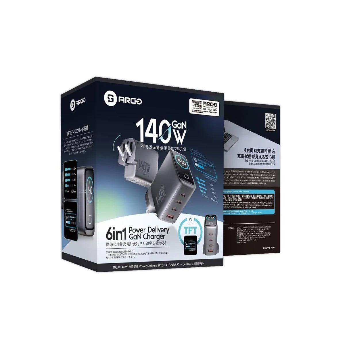 ⚡ Argo PowerZap 14 X140S 140W GaN 旗艦充電器,一顆搞定筆電手機全快充:內建炫彩 TFT 智慧大屏,搭配 3C1A 四端口輸出與 140W 高功率 GaN 氮化鎵架構,無論是 16 吋筆電、平板還是手機,都能同時高速穩定充電。