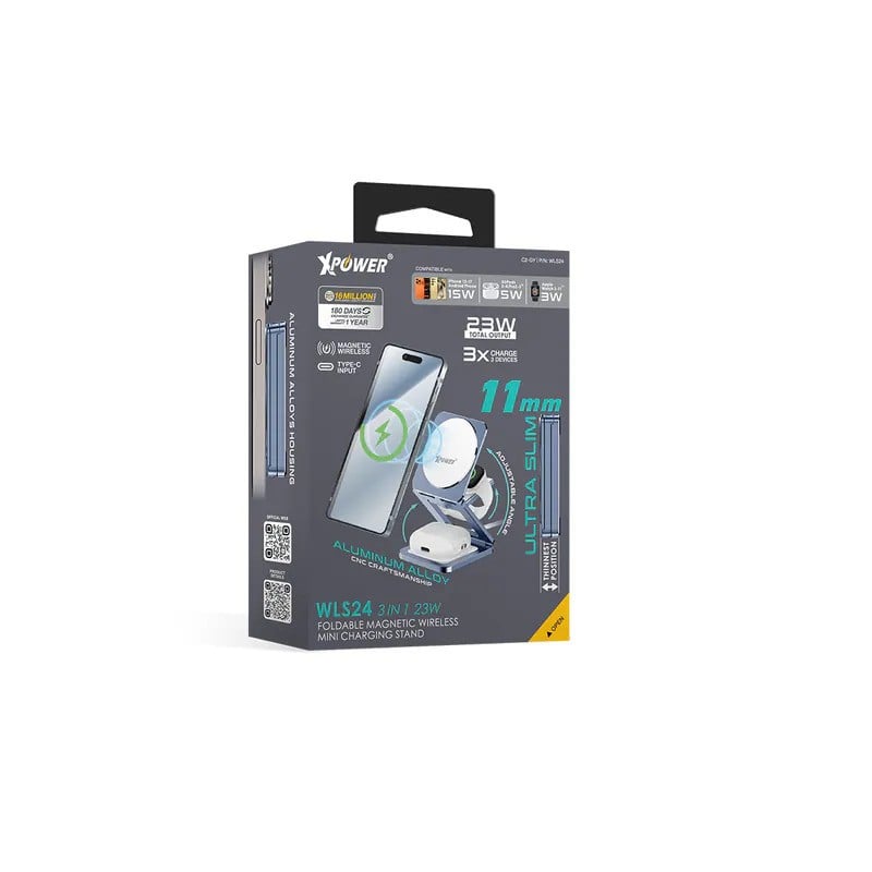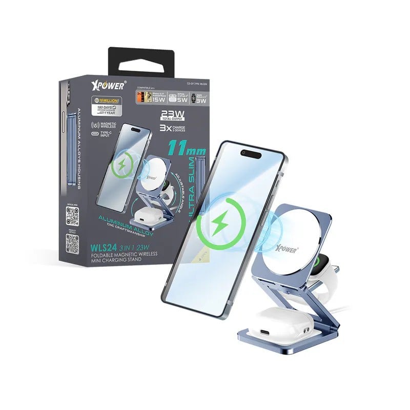 XPower WLS24 全球最薄鋁合金 3合1 Qi2 折疊式磁吸無線充電座